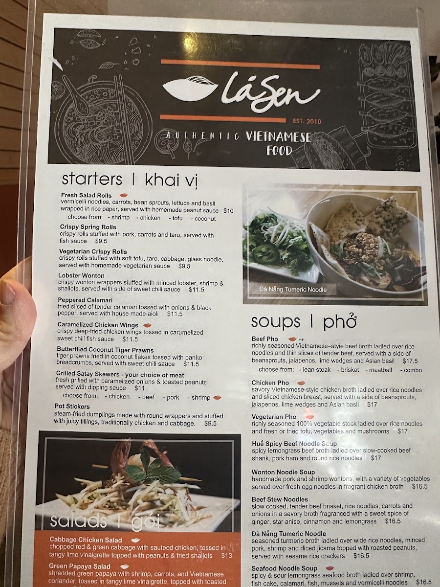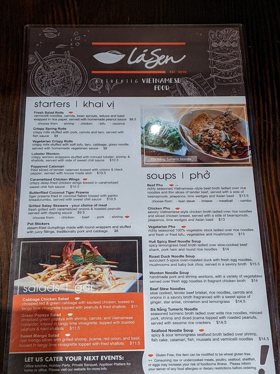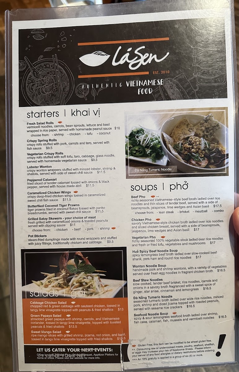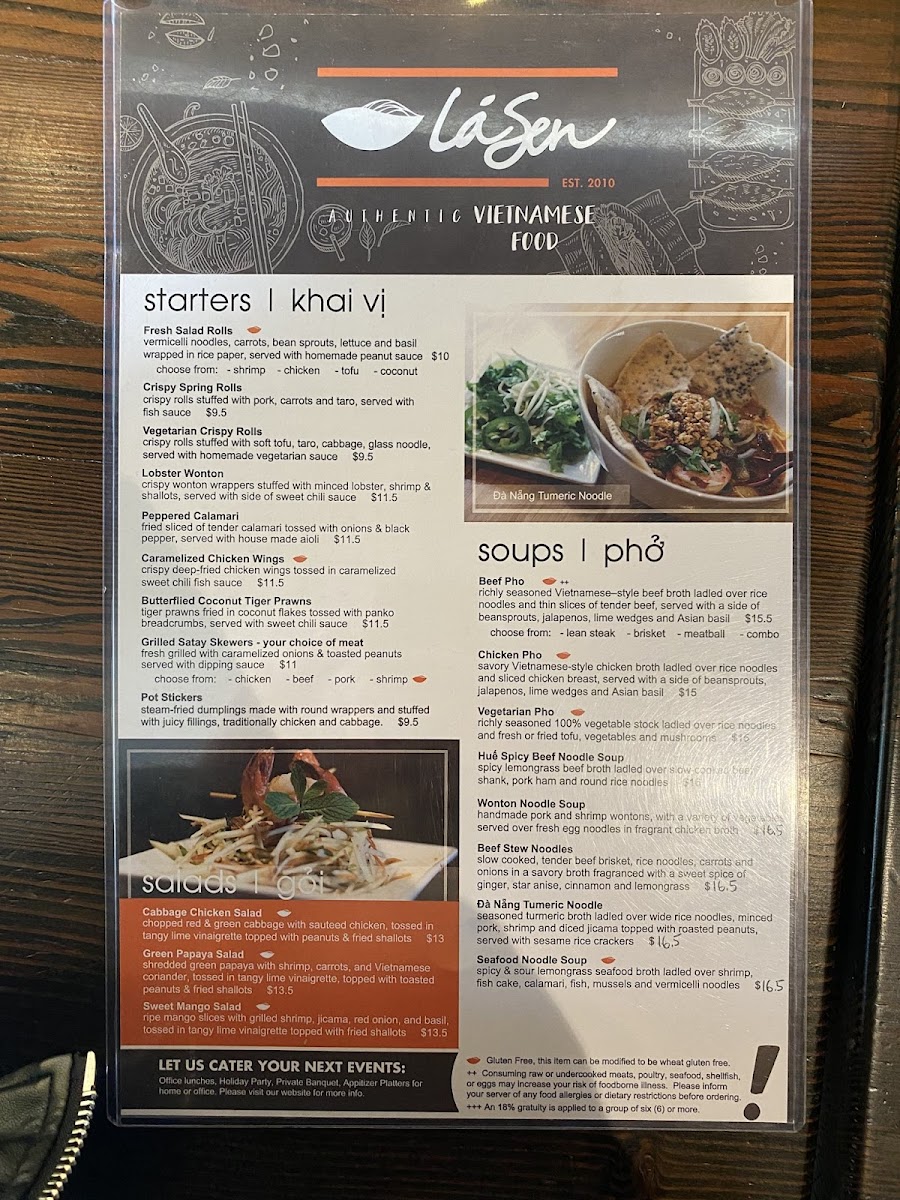 The menu at Lá Sen Vietnamese Grill offers a thoughtfully curated selection of dishes that reflect the comforting and vibrant nature of Vietnamese cuisine. It's the kind of place where you can enjoy a casual, satisfying meal whether you're in the mood for a warm bowl of pho or refreshing fresh salad rolls. The menu balances traditional favorites like chicken pho and three types of beef pho with lighter options such as mango salad and vegetarian rolls, making it a versatile choice for different tastes and moments.